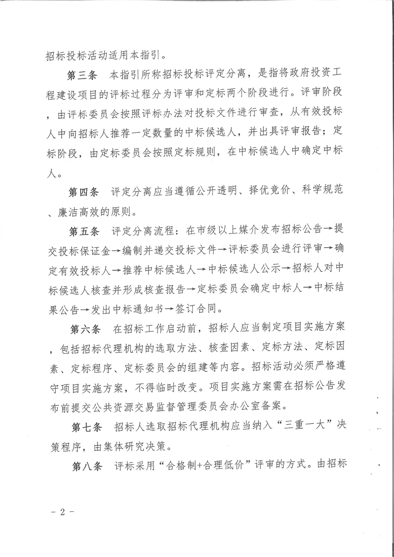 济源示范区政府投资工程建设项目招标投标“评定分离”规范指引