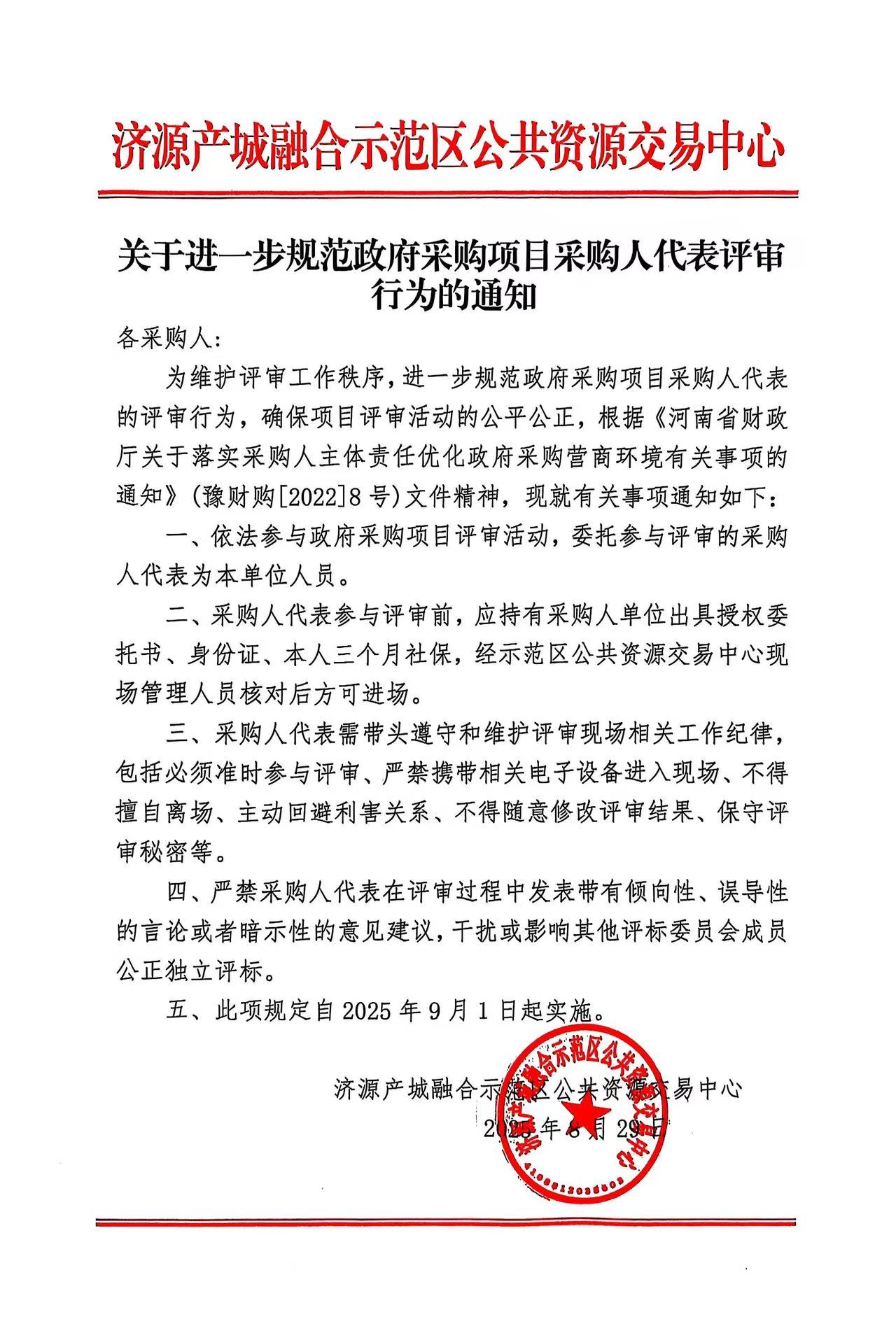 关于进一步规范政府采购项目采购人代表评审行为的通知